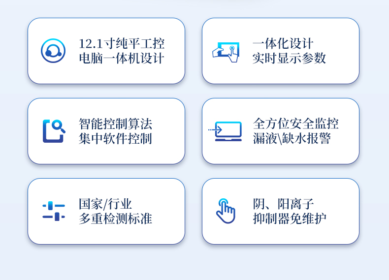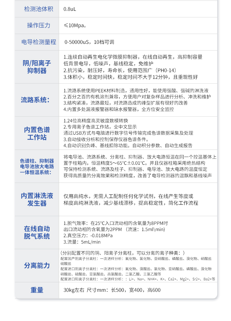 | 我們公司作為離子色譜儀器市場的新業(yè)態(tài),一直致力于為用戶提供更快捷、優(yōu)質(zhì)的儀器,以保障實(shí)驗(yàn)室的建設(shè)和運(yùn)行。始終堅(jiān)持以客戶為中心,為有檢測需求的客戶服務(wù)。物美價(jià)廉、響應(yīng)迅捷、服務(wù)全面。 | 全新一代離子色譜儀,采用12.1吋純平工控電腦一體機(jī)設(shè)計(jì)(用戶不需要配電腦),實(shí)時(shí)顯示儀器運(yùn)行參數(shù)和狀態(tài);一鍵啟動電動閥進(jìn)樣,一鍵完成儀器開關(guān)機(jī)、維護(hù)等操作,一鍵調(diào)閱儀器操作教程,方便快捷。 | 離子色譜儀核心零部件自主研發(fā)、自主知識產(chǎn)權(quán)可控。采用一體化設(shè)計(jì),集離子色譜主機(jī)、淋洗液發(fā)生器、工控電腦、色譜工作站于一體,結(jié)構(gòu)緊湊,流路*短,對流路造成的峰型擴(kuò)展有很好的改善。一體化恒溫箱:色譜柱、抑制器、電導(dǎo)池、放大電路都處于同一恒溫系統(tǒng),改善了電導(dǎo)檢測器的溫飄和基線噪聲。內(nèi)置多處漏液報(bào)警器和缺水報(bào)警器,全方位安全監(jiān)控。由PLC控制的各個部件統(tǒng)一到電腦顯示屏的集中軟件控制系統(tǒng),操作方便,鼠標(biāo)所見即所控。 |