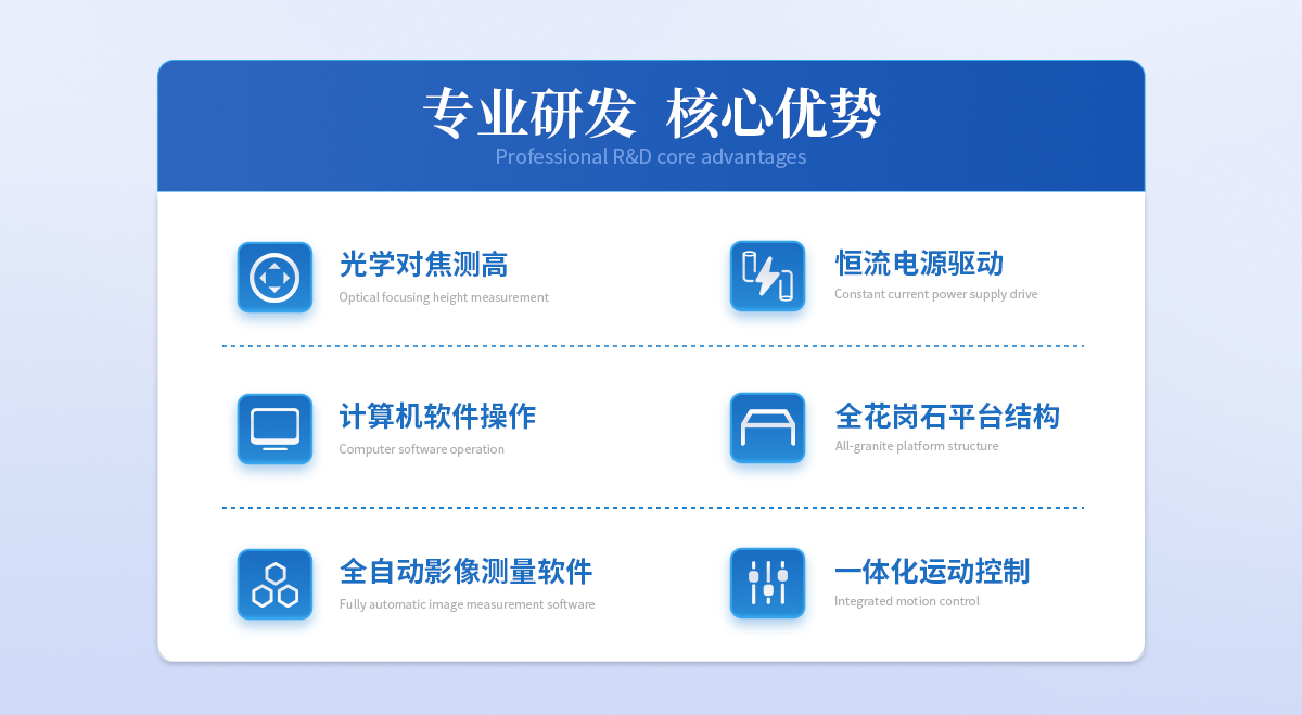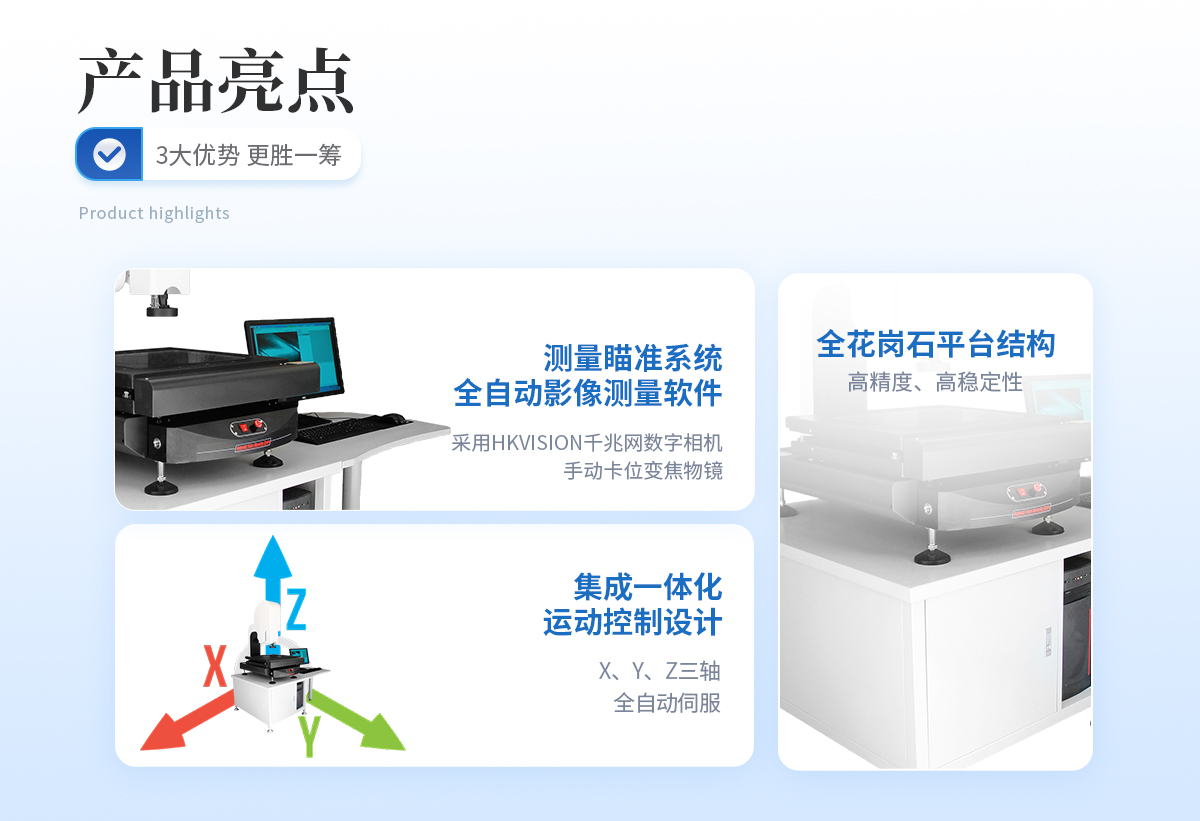 ? 三軸均采用臺灣LEPIN高精度直線導(dǎo)軌、精密級無牙螺桿傳動,噪音低振動小,動態(tài)幾何誤差變形*小。 | ? 采用優(yōu)質(zhì)花崗巖大理石底座、立柱、工作臺,具有良好的溫度穩(wěn)定性、抗實(shí)效變形能力 。 | ? 有限元結(jié)構(gòu)分析及優(yōu)化結(jié)構(gòu)設(shè)計(jì)為該系列保證了系統(tǒng)整體的高精度及高穩(wěn)定性。 | ? 采用集成式多功能控制器,整體機(jī)臺故障率低,售后更方便 。 | ? 配備紅點(diǎn)激光定位裝置,方便快捷找準(zhǔn)測量位置 。 |