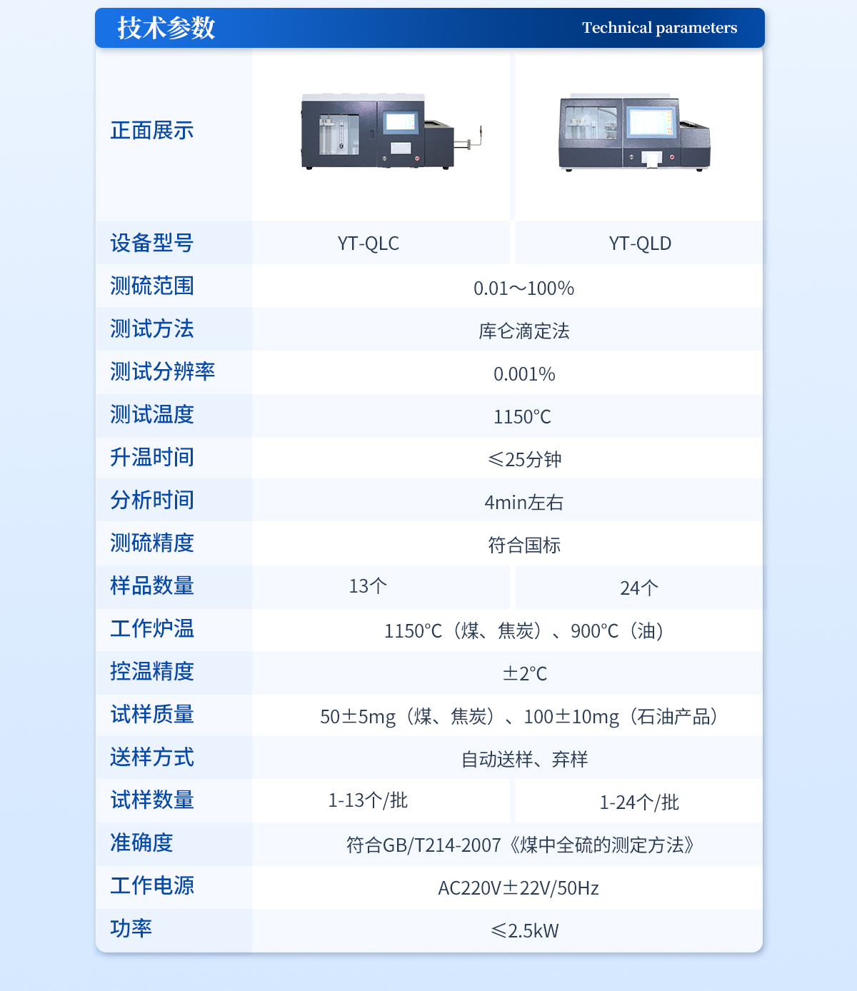 測(cè)硫范圍:0.01~100% | 測(cè)試方法:庫(kù)侖滴定法 | 測(cè)試分辨率:0.001% | 測(cè)試溫度:1150℃ | 升溫時(shí)間:≤25分鐘 | 分析時(shí)間:4min左右 | 測(cè)硫精度:符合國(guó)標(biāo) | 樣品數(shù)量:24個(gè) | 工作爐溫:1150℃(煤、焦炭)、900℃(油) | 控溫精度:±2℃ | 試樣質(zhì)量:50±5mg(煤、焦炭)、100±10mg(石油產(chǎn)品) | 送樣方式:自動(dòng)送樣、棄樣 | 試樣數(shù)量:1-24個(gè)/批,試驗(yàn)過(guò)程可添加/替換試樣 | 準(zhǔn)確度:符合GB/T214-2007《煤中全硫的測(cè)定方法》 | 工作電源:AC220V±22V/50Hz 功率:≤2.5kW |