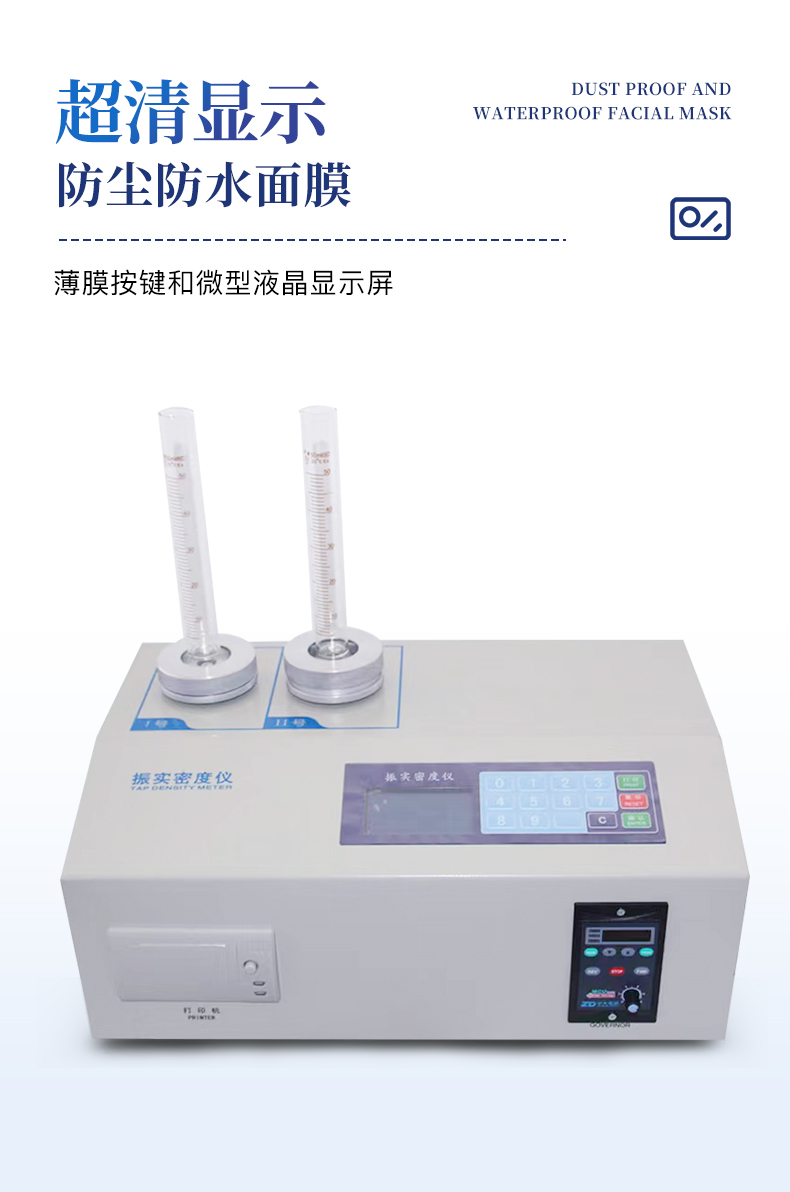 | 試樣重量:≤500.00克; | 試樣體積:≤250.00毫升; | 單次振動次數(shù):0~99999次(當(dāng)設(shè)定為0次時結(jié)果輸出為"松裝密度"); | 電機允許力矩:0.86 N.m; | 振動頻率: 0~300轉(zhuǎn)/分鐘(連續(xù)可調(diào)); | 液晶顯示屏(輸出樣品信息); | 微膜按鍵(操作方便) | 兩個工作位可以同時使用 | 振動幅度:3mm,(可調(diào)) | ZS2高精度振實密度儀是專門針對固體粉體密度的測量儀器,按照國家標(biāo)準GB/T 5162-2006/ISO3953:1993,參照美國藥典標(biāo)準研發(fā)制造。廣泛應(yīng)用于工業(yè)、電池材料、藥品材料、奶制品、磨料、造紙、水泥、涂料、科研機構(gòu)、大中專院校以及各種金屬和非金屬行業(yè)。 |